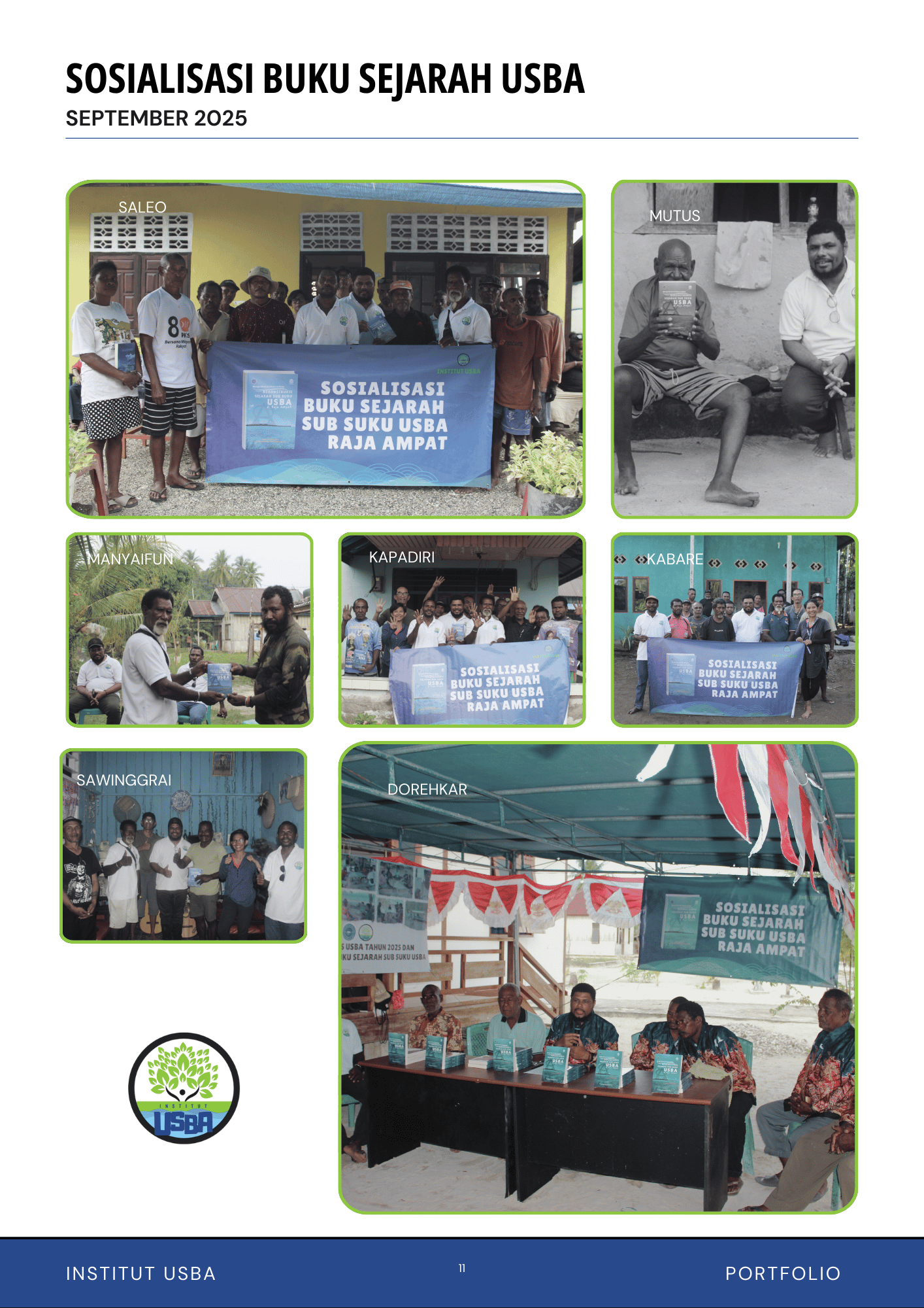 Dalam perjalanan sosialisasi ini, tim Institut Usba melakukan kunjungan ke tiap kampung dan marga di wilayah Raja Ampat, membagikan buku dan mengadakan diskusi terbuka bersama masyarakat. Buku tidak hanya dibaca, tetapi diperbincangkan kembali, diperiksa bersama, dan diberi ruang untuk menerima masukan, koreksi, atau tambahan cerita dari para pemilik ingatan.